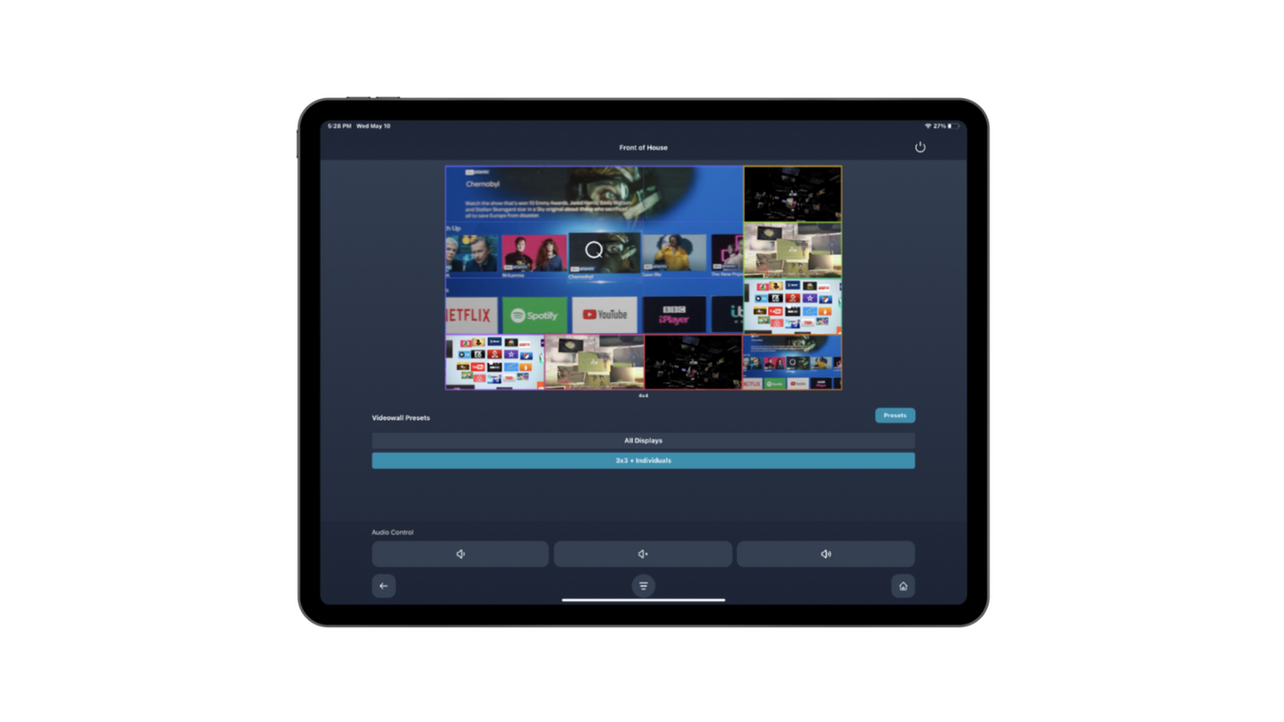 Video Wall & Multiview Control — Instantly recall video wall layouts and multiview presets